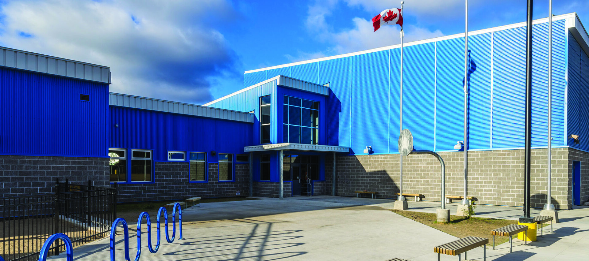 The school was a 2,040 m2 pre-engineered steel building on a concrete to bedrock foundation. Energy efficient wall and roof systems were incorporated into the school along with the brick and metal siding and a mod-bit roof. This project also involved extensive Sewer & Water installations, upgrades to the Water Treatment Plant, renovation of the Poplar Hill Diesel Generating Station, two tri-plex teacherage units, hockey rink, and detailed landscaping. Some of the challenges on this project were the site location on a wooded rocky hill, rock blasting, mining for aggregates, and short-lived winter roads.